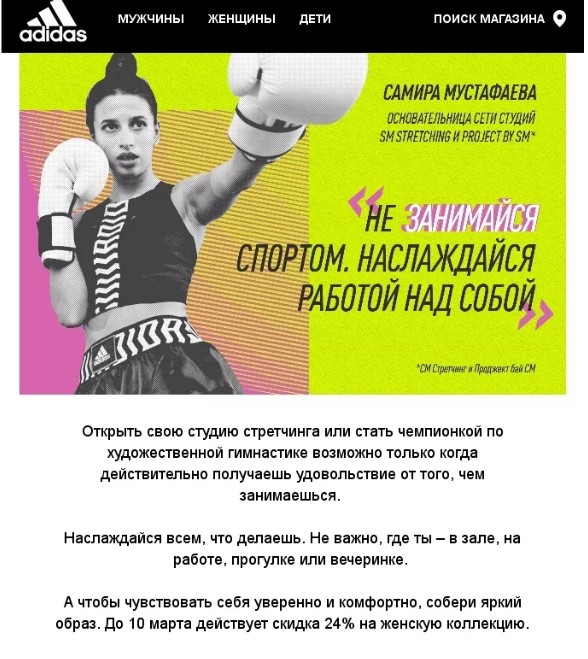 Adidas не озвучивает повод для отправки рассылки, но дарит подарок в ожидаемые даты