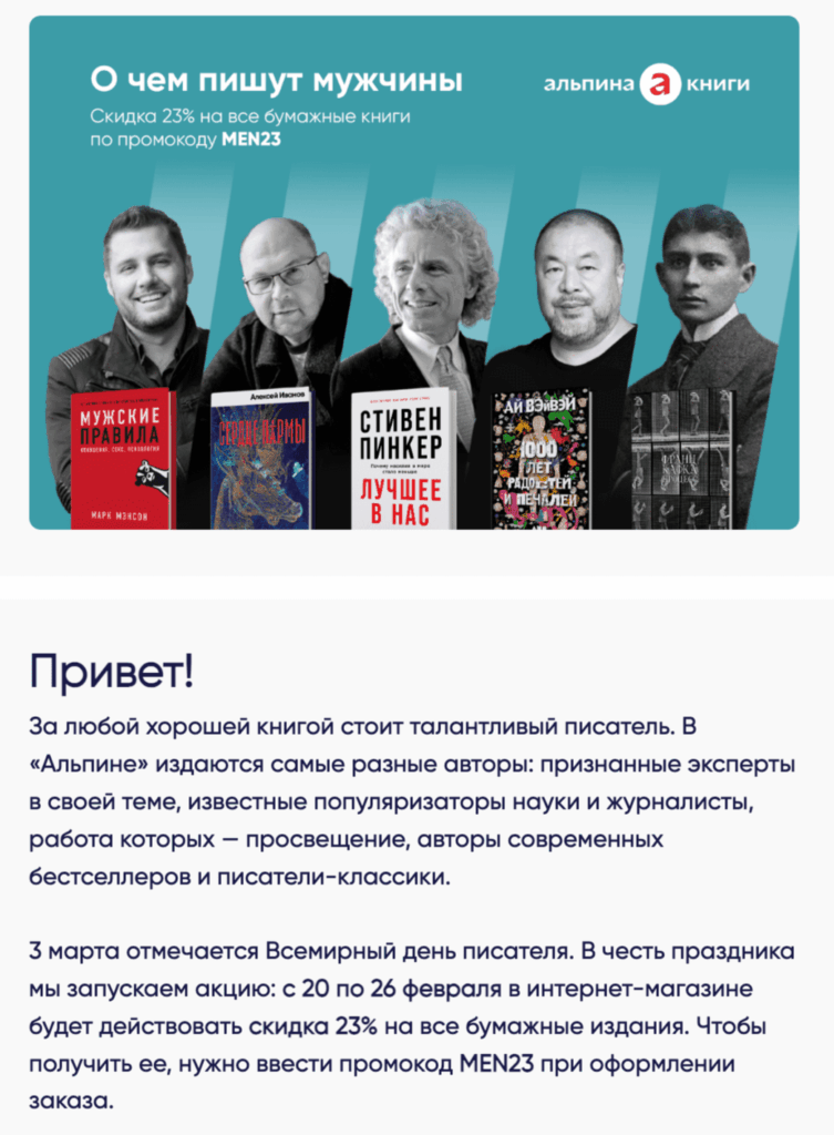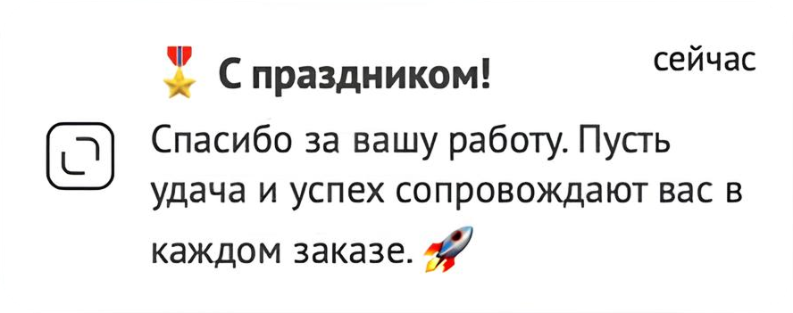 • Клиенты (B2C и B2B) — поздравление и мотивация к заказу.