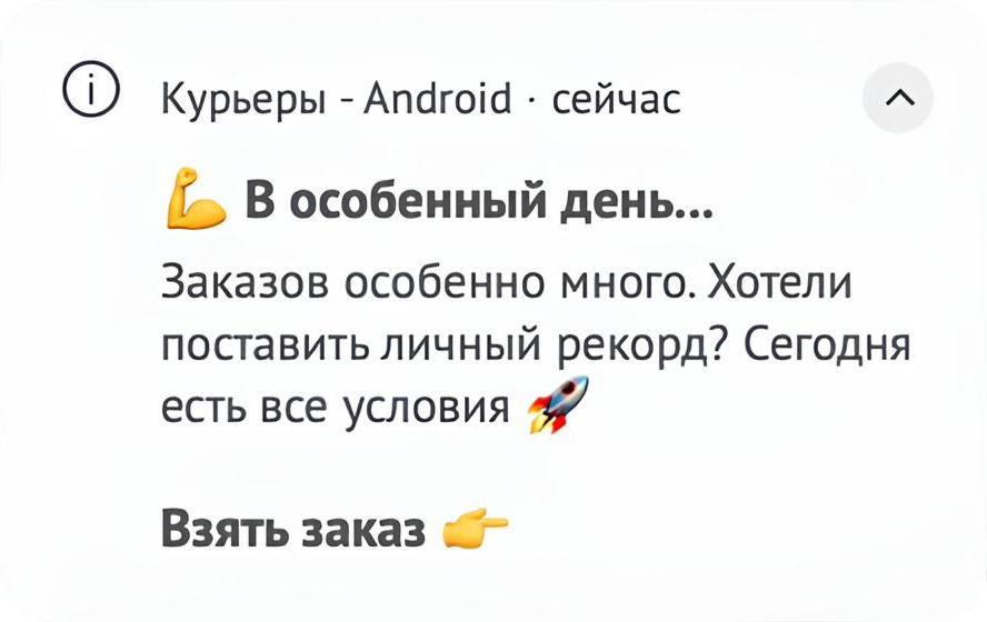 • Курьеры — стимул выйти на смену и признание вклада.