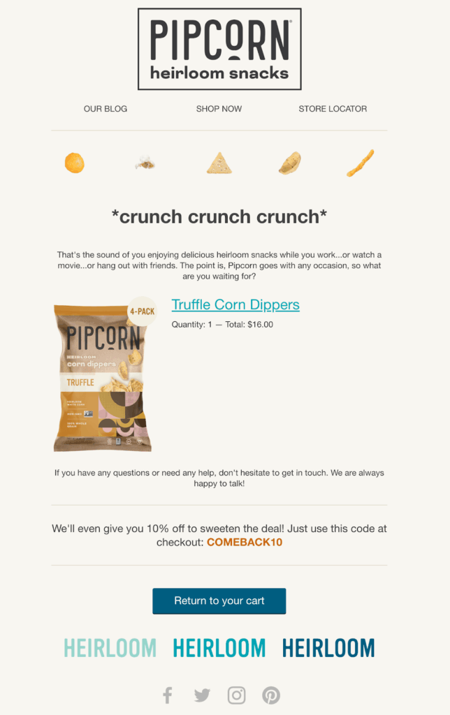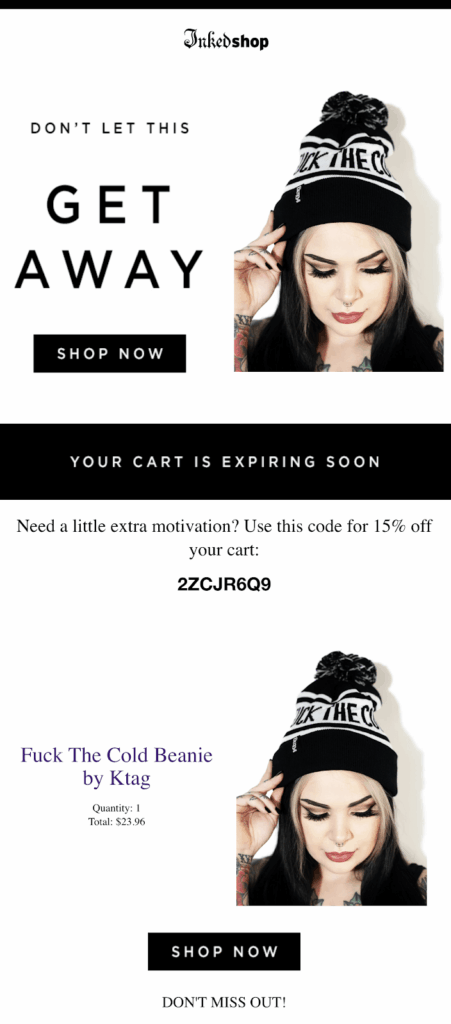 Эмоциональный хук + скидка 15% + приглашение в социальные сети бренда