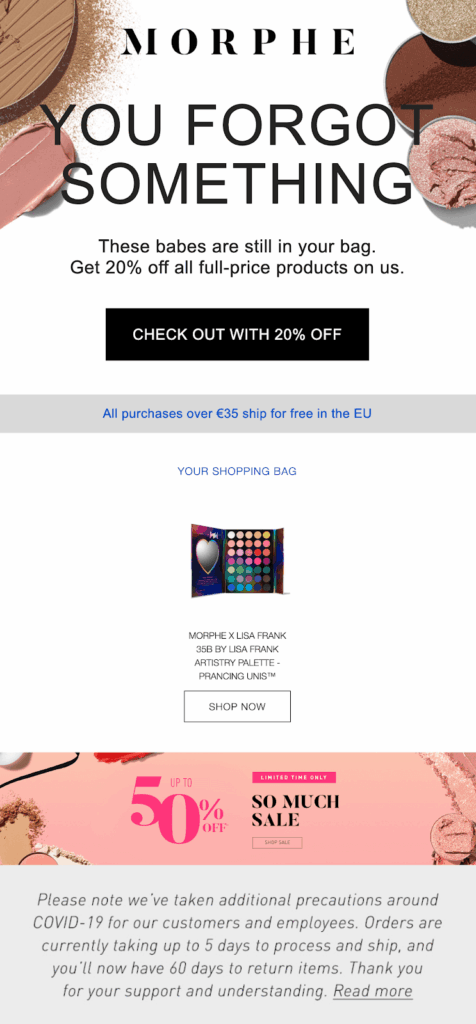 При этом SMS для восстановления брошенных корзин показывают примерно на 25% более высокие показатели конверсии, чем электронные письма. Они также могут похвастаться показателями открываемости, приближающимися к 98% , при этом 90% сообщений читаются в течение 3 минут .
