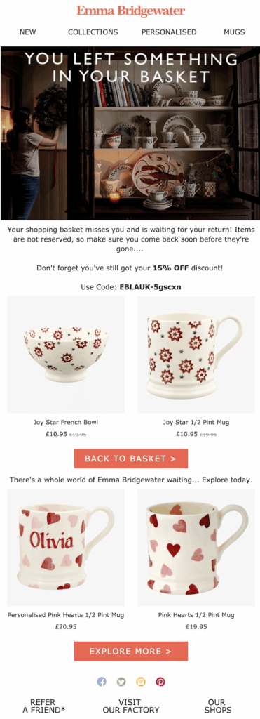 Текст: [Имя], корзина ждет! [Товар] -10%