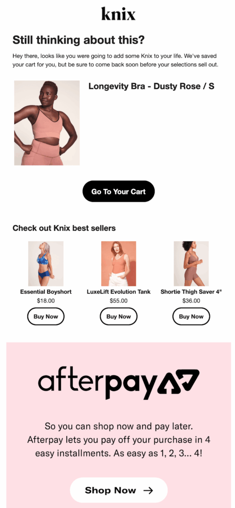 Напоминание + рекомендации похожих товаров + предложение о постоплате заказа