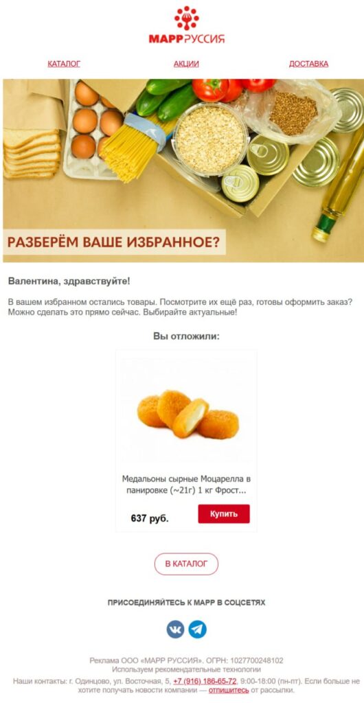 Ошибка: В письме показан товар, которого уже нет в наличии.