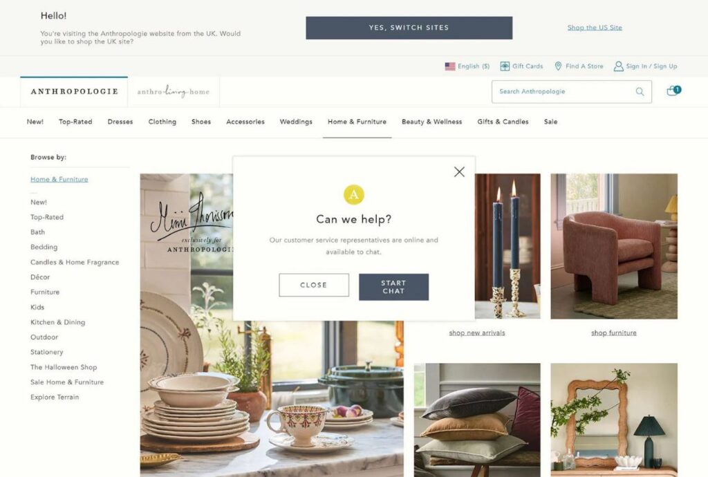 Также попапы отлично работают для удобства пользователей, если нужно выбрать подходящую геолокацию (для крупных брендов), а также для напоминания о помощи службы поддержки.