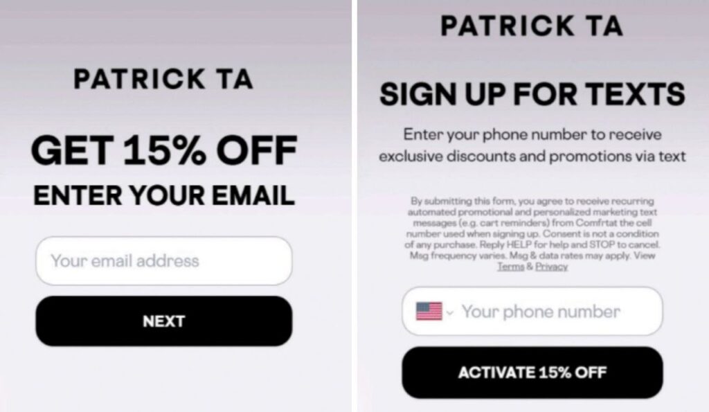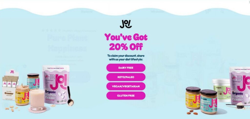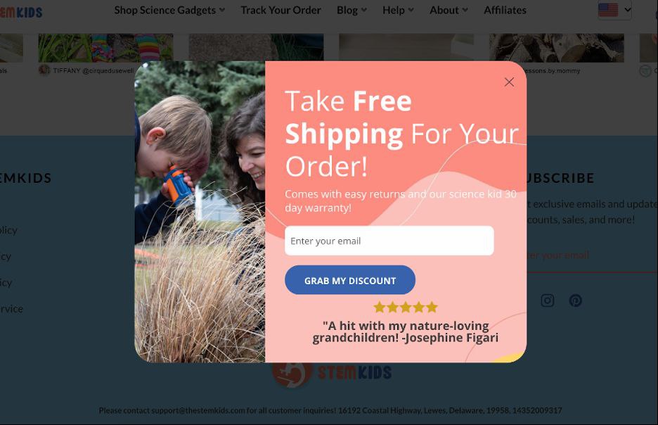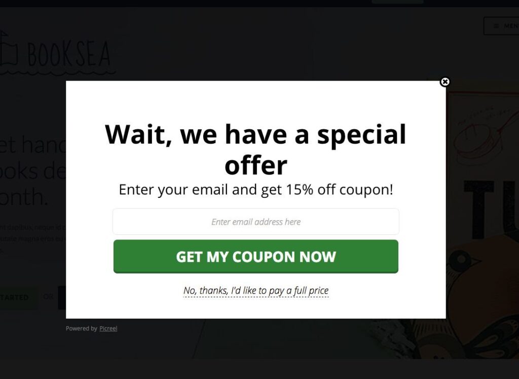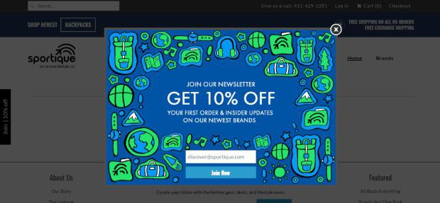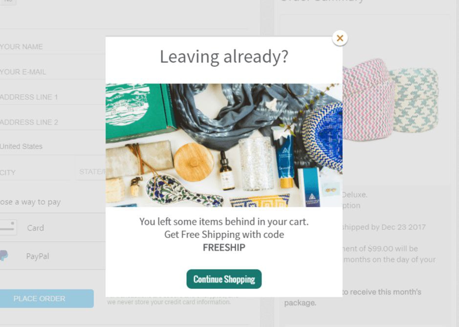 Попапы, которые предлагают бонусы уходящим клиентам (за email и без) и даже бесплатные образцы товаров.