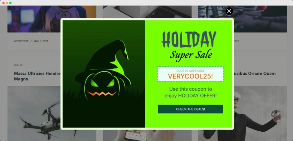 Тематический попап со скидкой, приуроченный к празднику