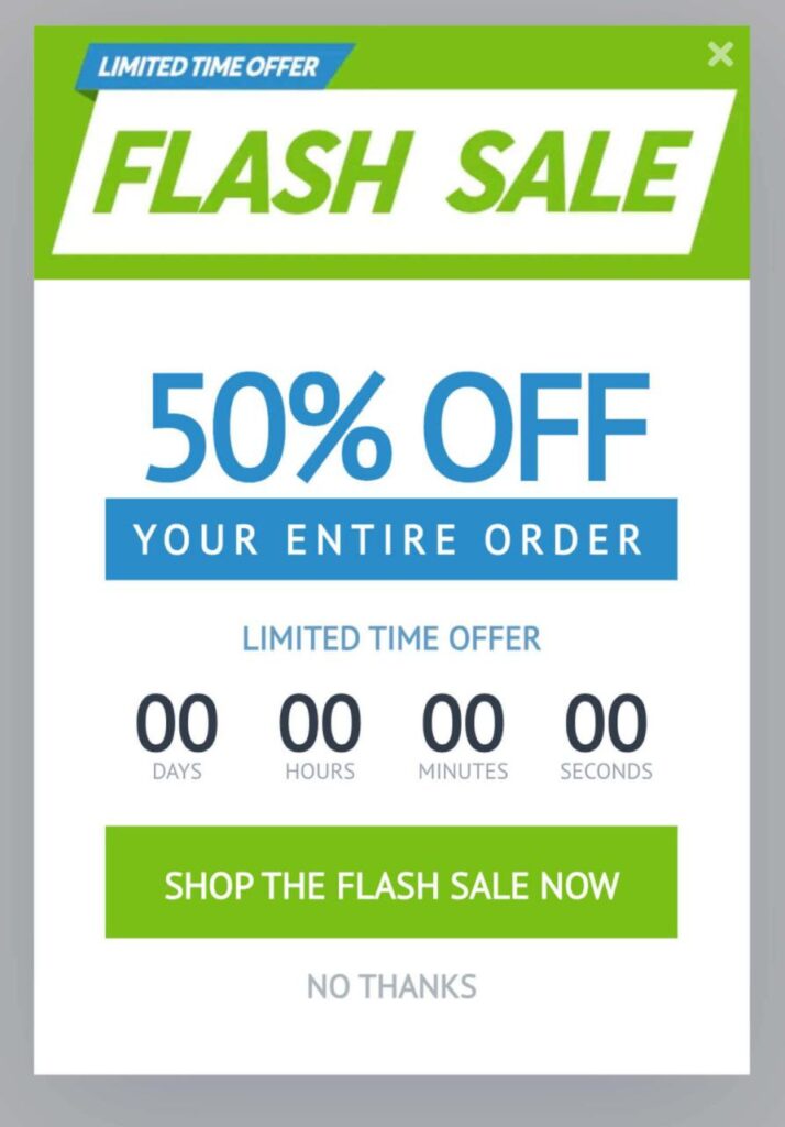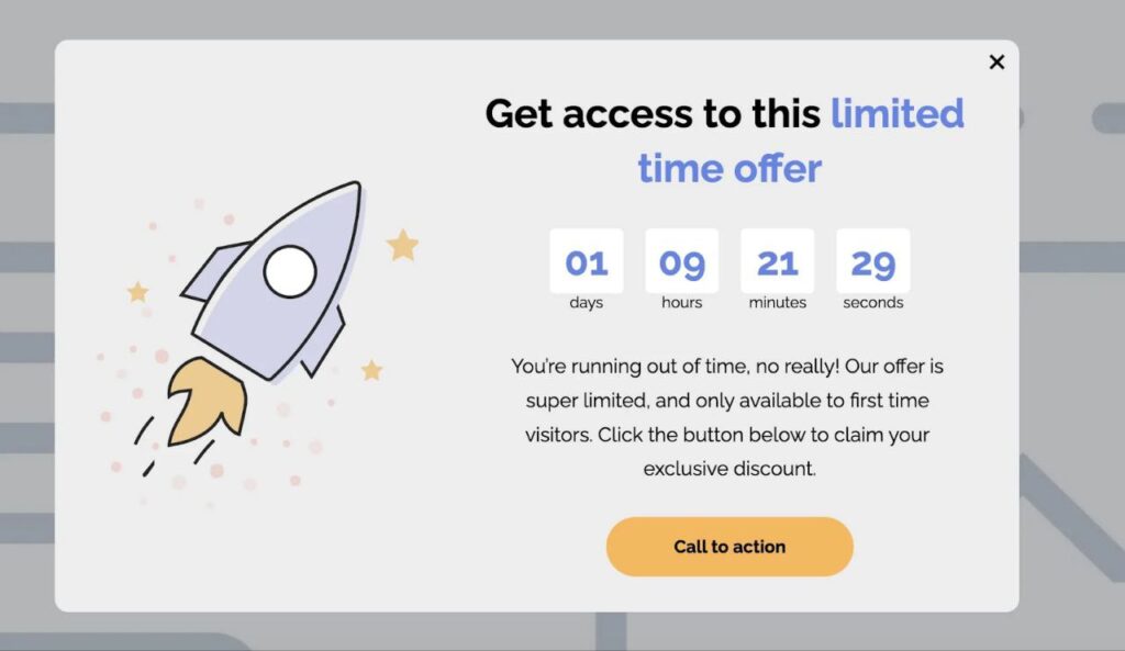 Попап с таймером обратного отсчета, который бустит клиента к покупке через FOMO.