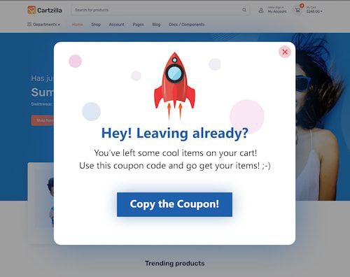 Попап, который срабатывает на уходе при наличии товаров в корзине