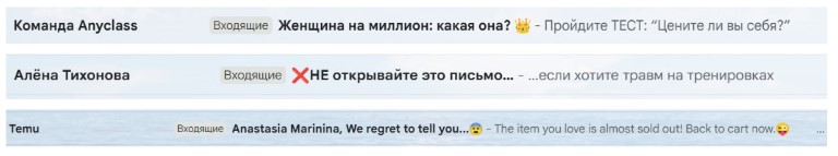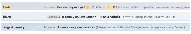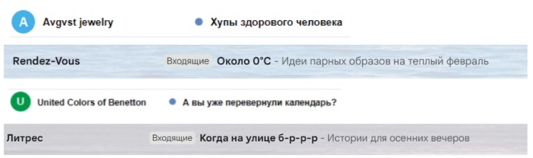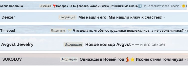 Конкуренция в email-рассылках огромная. Вот такой неприятный факт и в самом начале. Как конкурировать, если в арсенале до 35 символов, и хоть бы главное влезло в мобильную версию? Посмотрели на реальные примеры в наших почтовых ящиках.